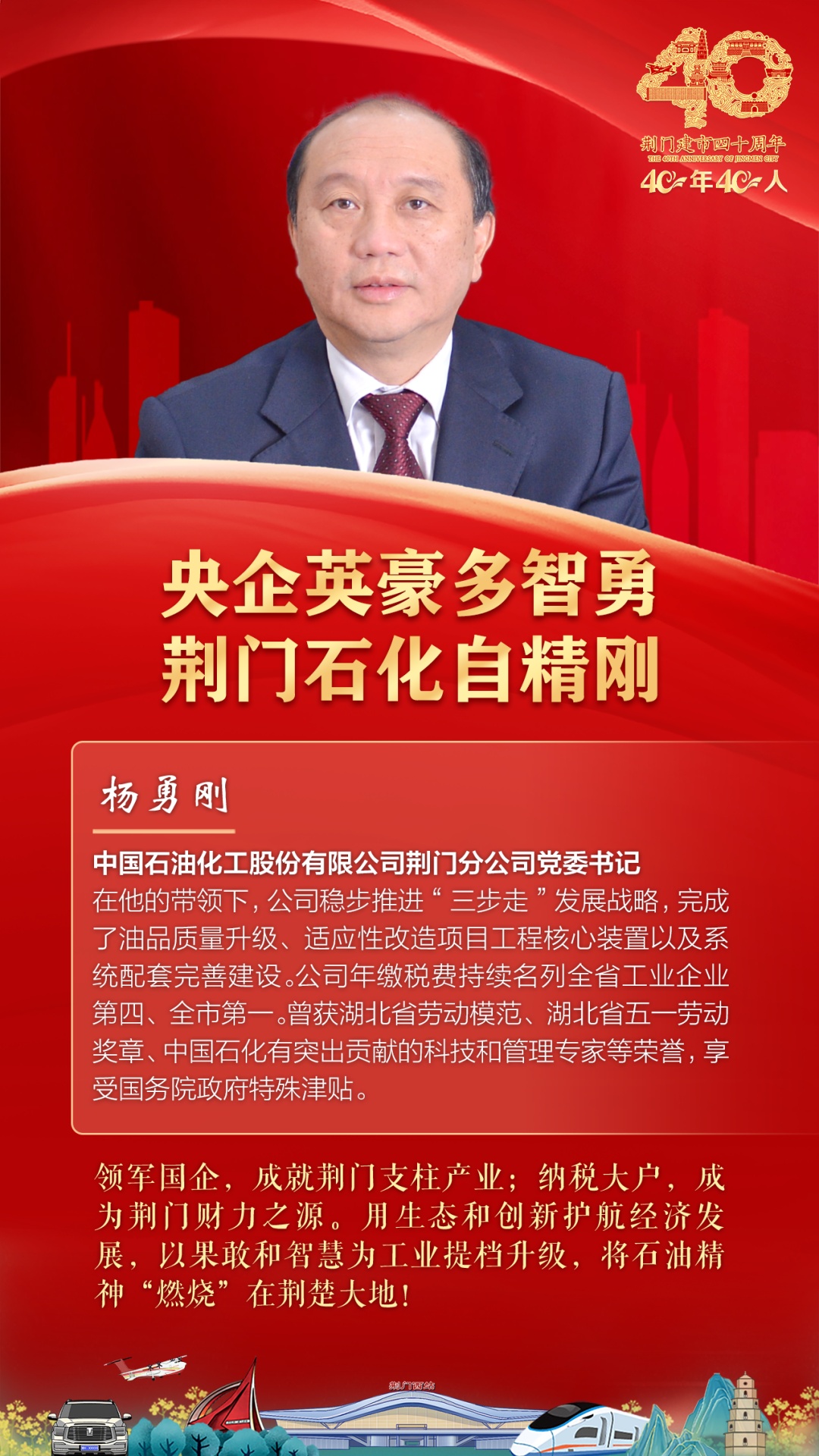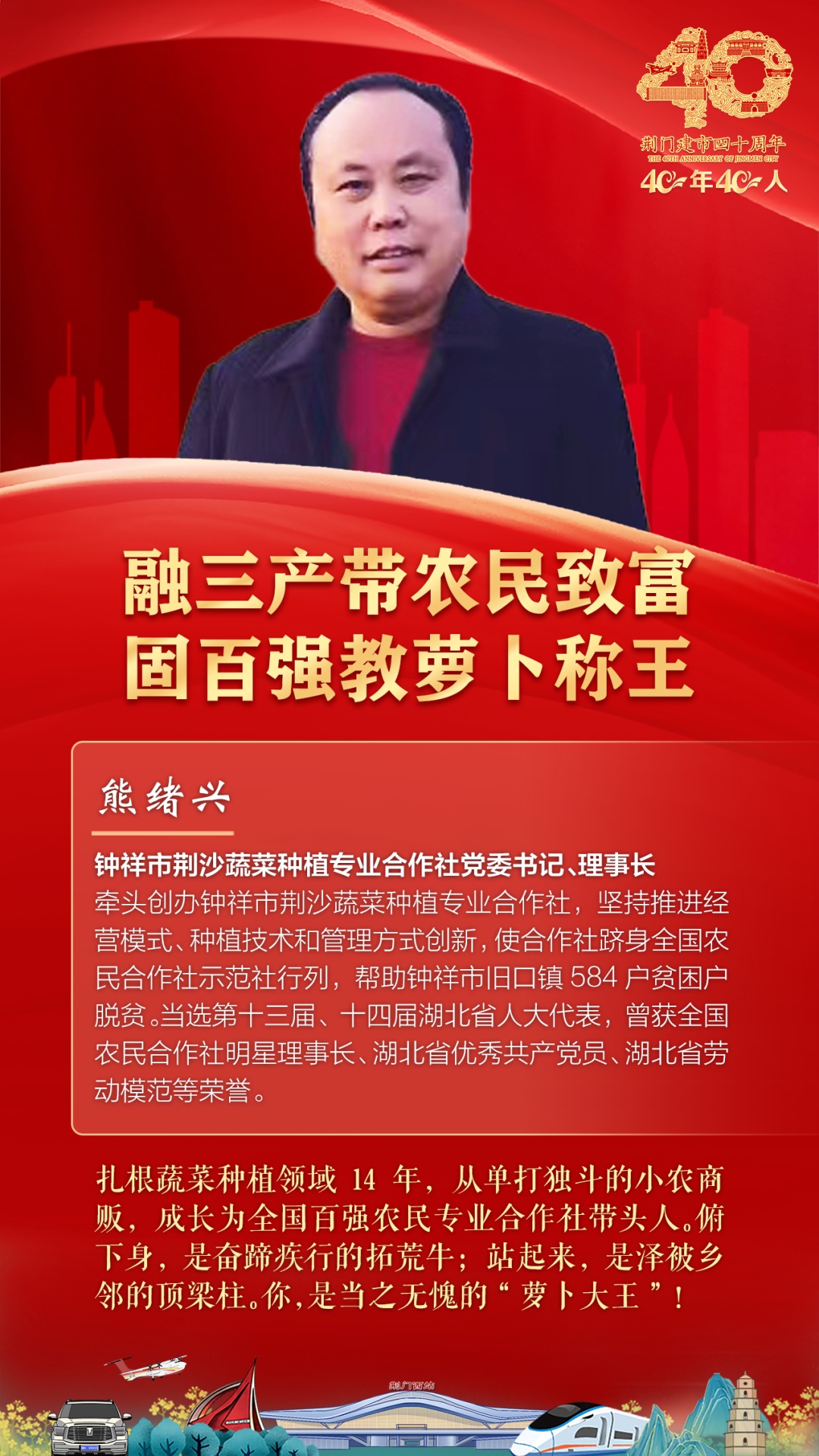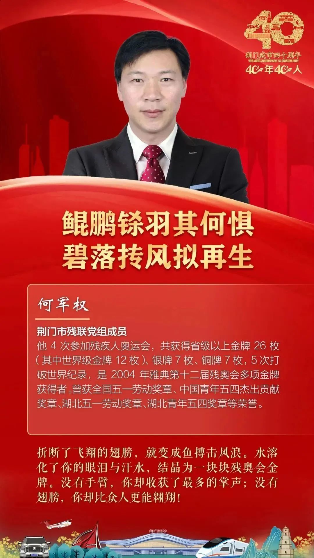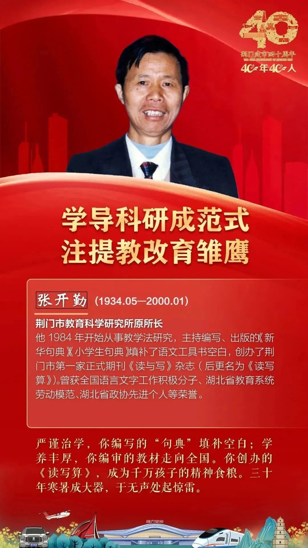此次发布的荆门“40年40人”中,既有经济发展的领军人物,也有科教文卫的杰出人物,还有其他领域的代表人物,他们是荆门经济社会跨越发展的功臣和荆门人民的楷模。(记者 邓显军 戴永君)
