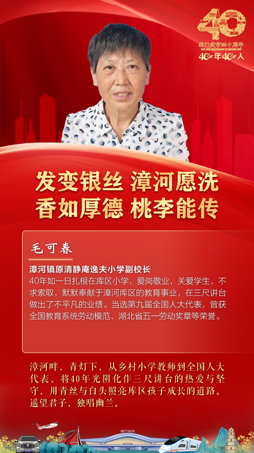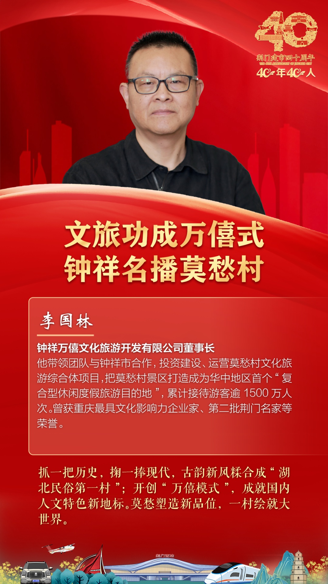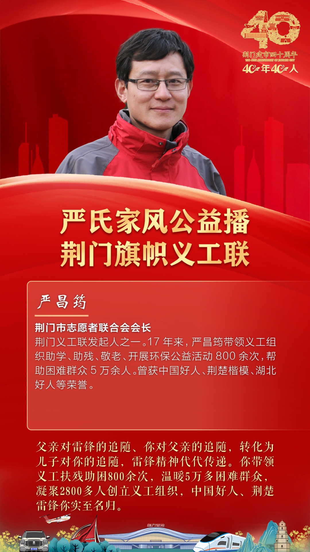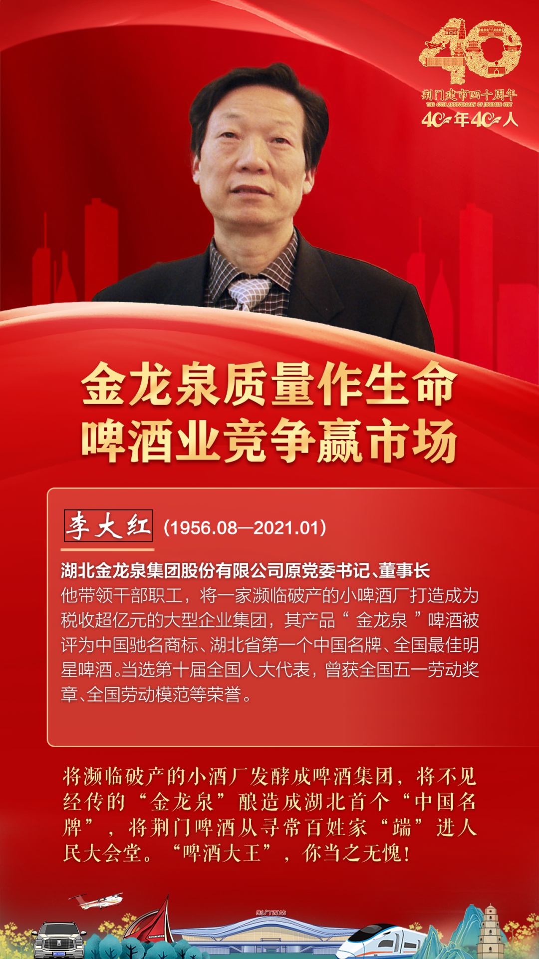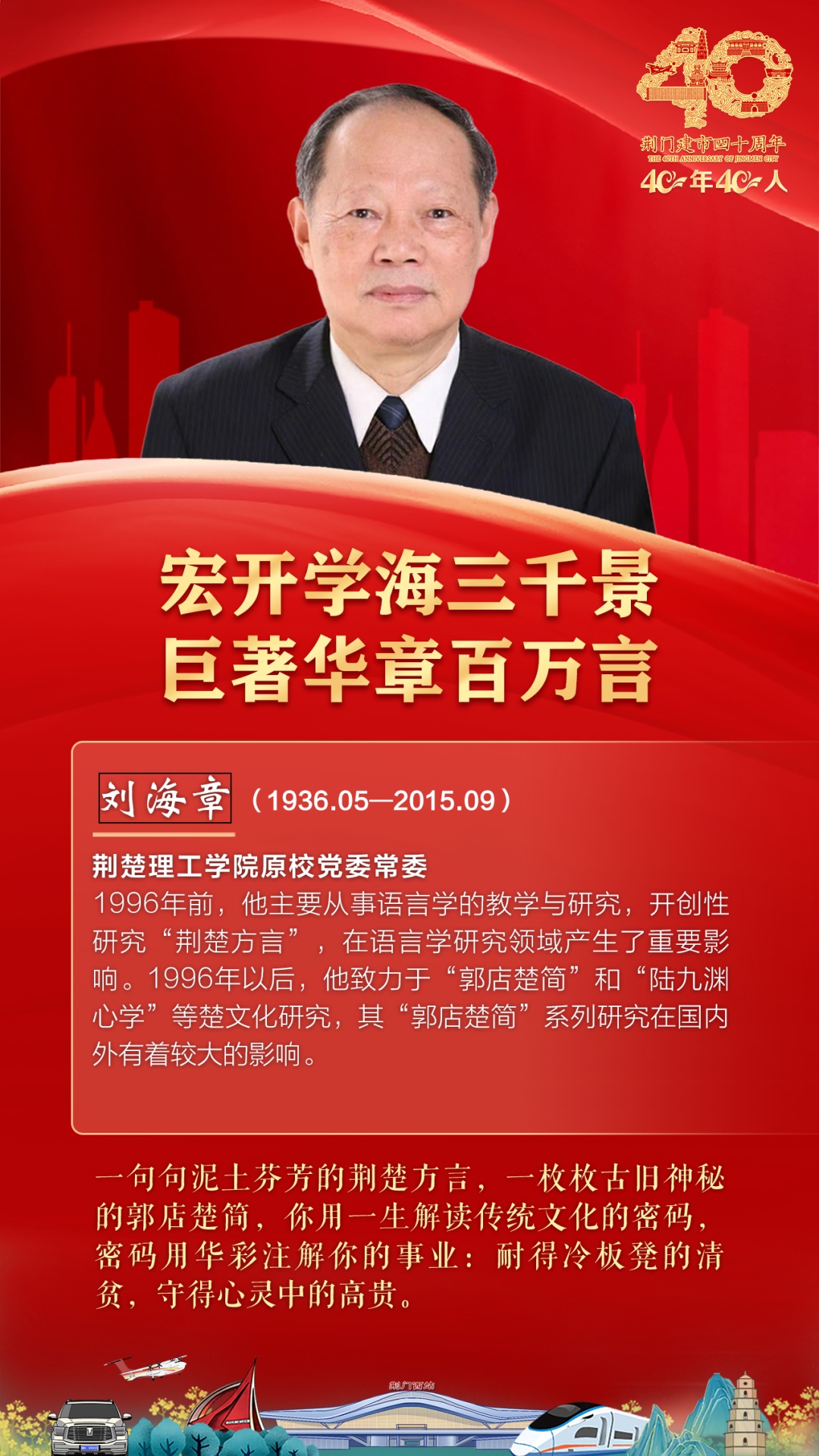 此次发布的荆门“40年40人”中,既有经济发展的领军人物,也有科教文卫的杰出人物,还有其他领域的代表人物,他们是荆门经济社会跨越发展的功臣和荆门人民的楷模。(记者 邓显军 戴永君)