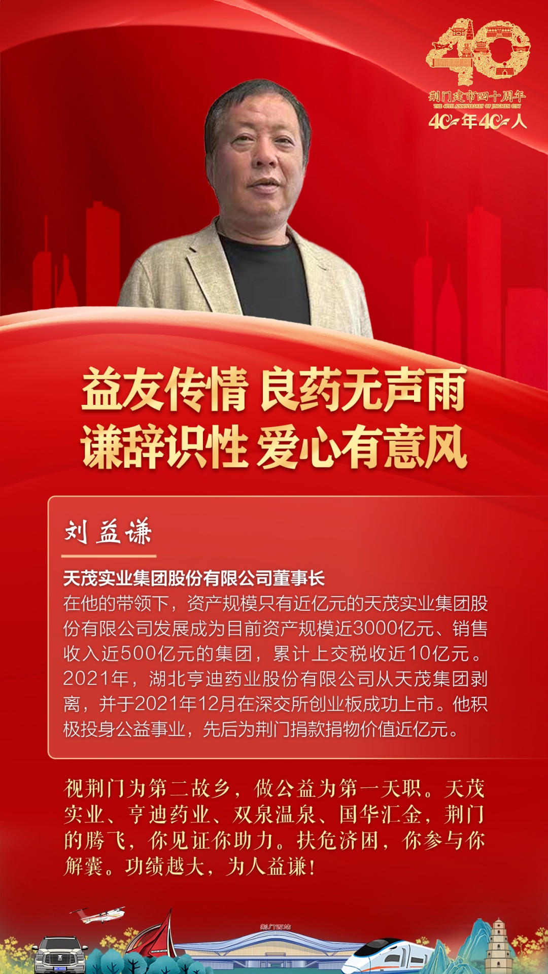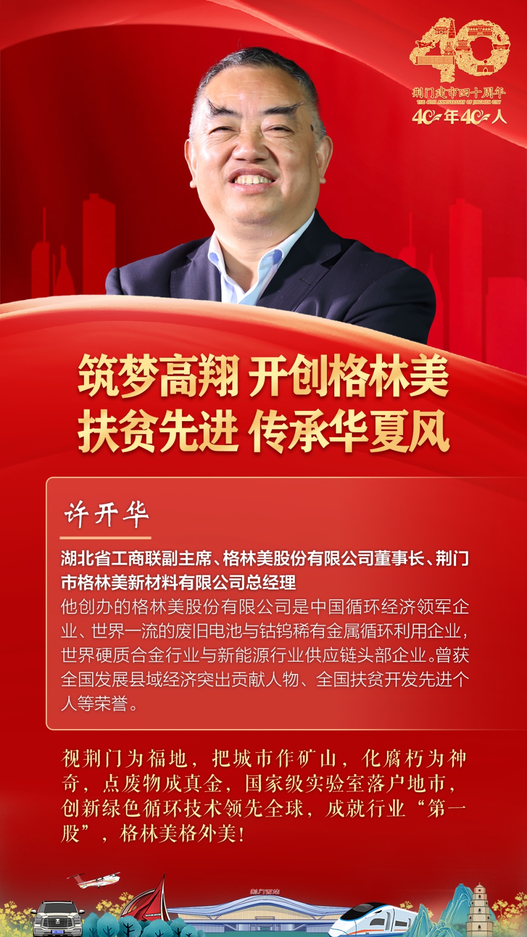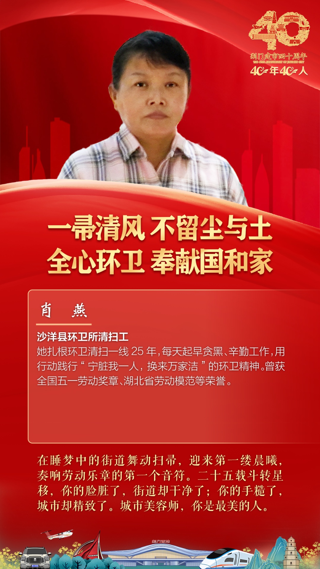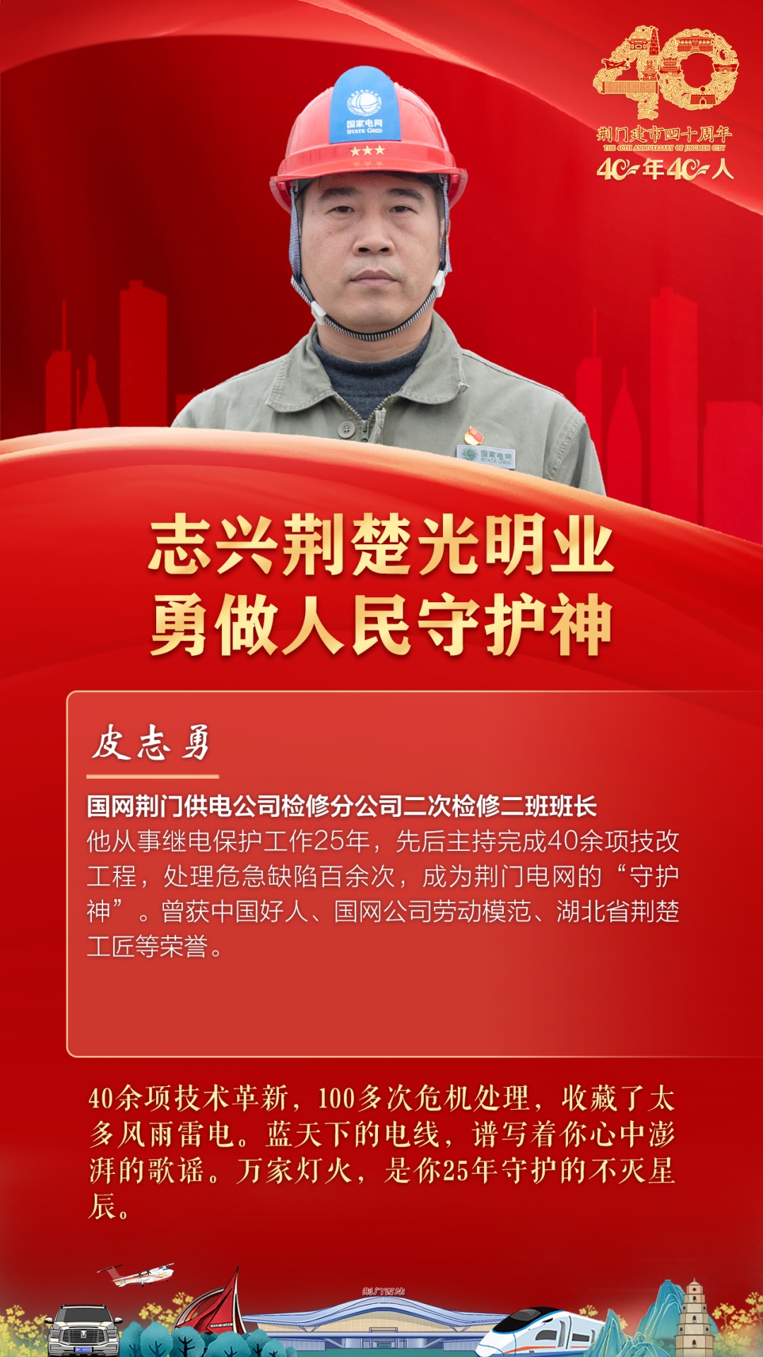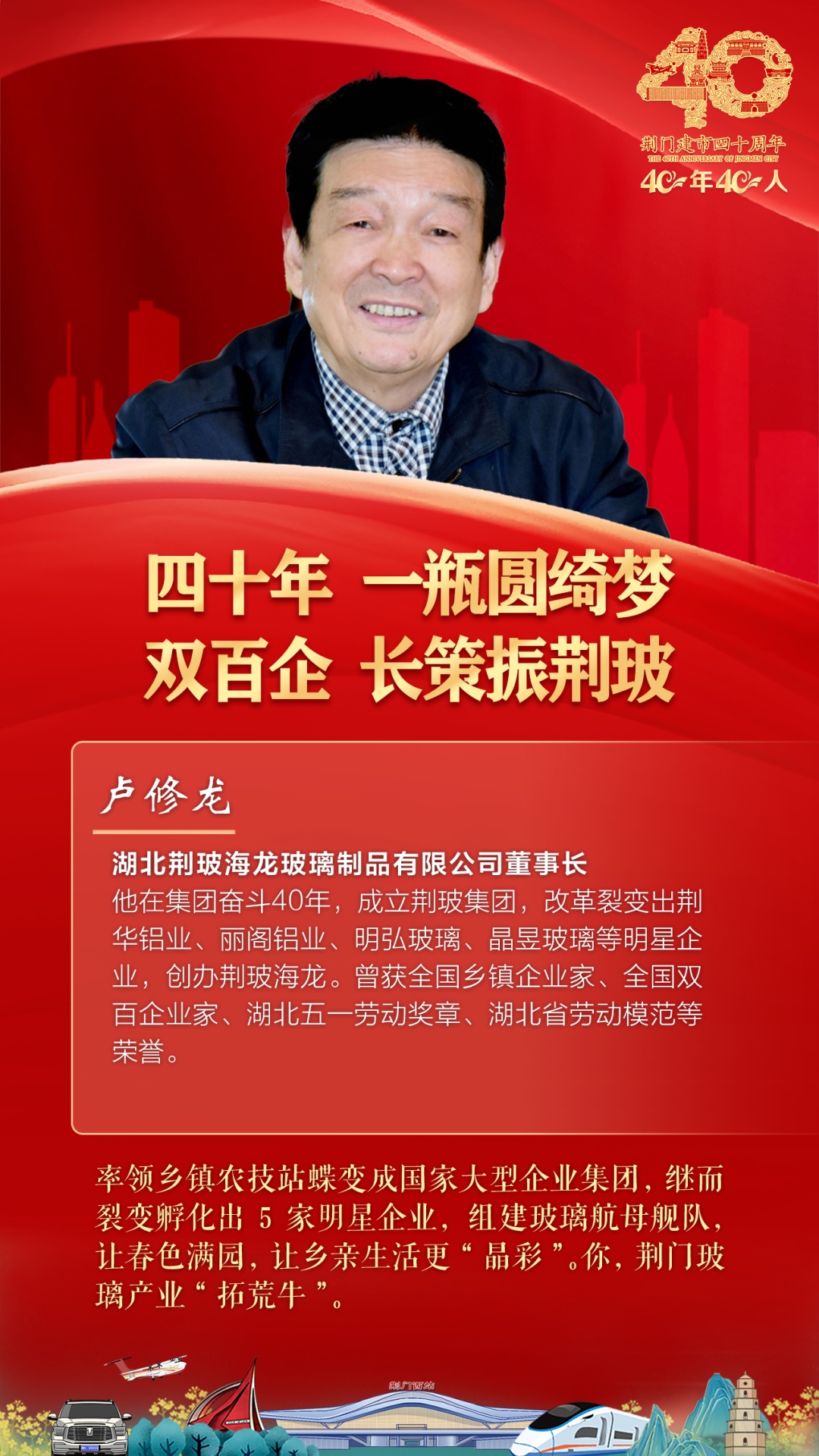 此次发布的荆门“40年40人”中,既有经济发展的领军人物,也有科教文卫的杰出人物,还有其他领域的代表人物,他们是荆门经济社会跨越发展的功臣和荆门人民的楷模。(记者 邓显军 戴永君)