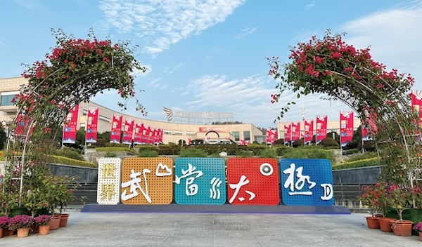 当日,记者在玉虚街看到,施工方正在搭建“太极之门”,整座大门按照仿古形式建造,主体已初见雏形,大面积的金黄色让大门显得更加庄严肃穆、充满节日气氛,周围新栽种的花草红绿相间,营造出浓浓的盛会氛围 。