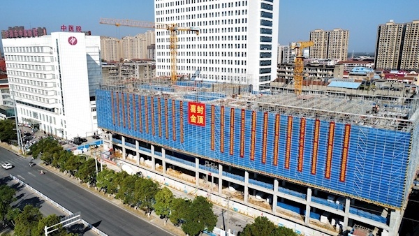10月18日,湖北洪湖中医院项目主体结构封顶,完成重大阶段性目标,为后续二次结构、机电设备安装等施工提供有利条件。
