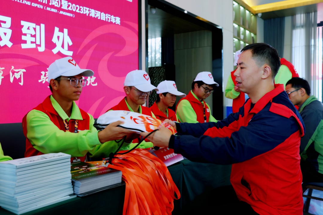 大美漳河,骑游圣地,10月21日,2023中国公路自行车公开赛(湖北·荆门站)暨2023环漳河自行车赛将正式开赛,今天(20日)参赛队员陆续报到!150名志愿者,正式上岗!