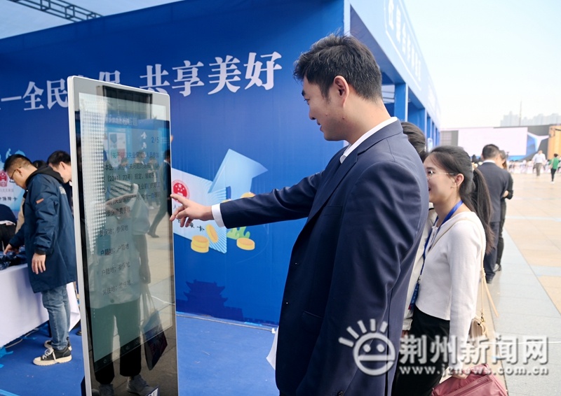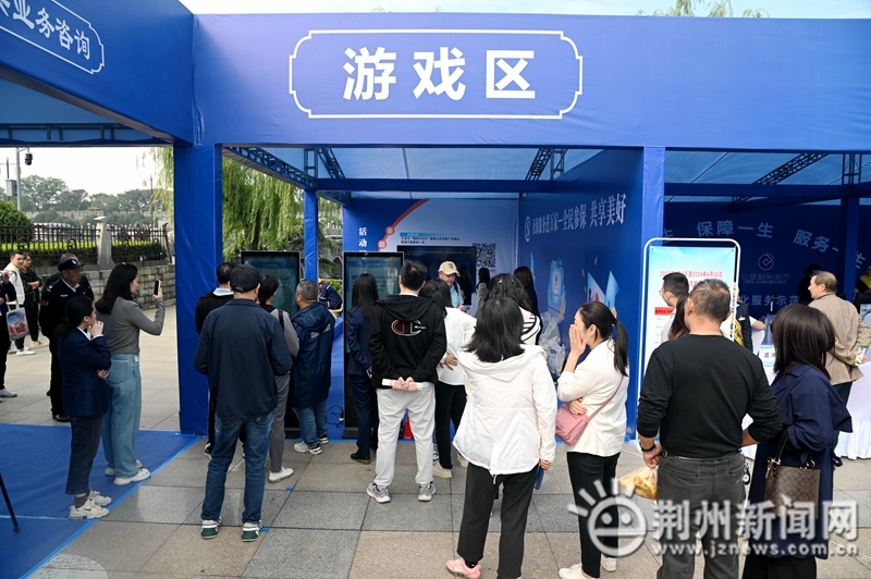 湖北的主会场设在荆州,现场除了五省连线外,还设置了不少居民参与互动的展区。社保历史文化展览区、社保政策宣传区、社银合作体验区、工伤预防体验区、工伤康复体验区、游戏互动区6大功能区,为市民朋友们送上丰盛的社保惠民“大餐”。其中,政策咨询区最受欢迎,不少民众来到现场解答解惑。