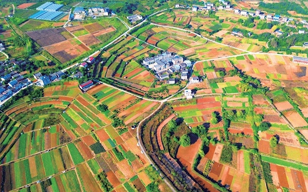 10月18日,郧阳区柳陂镇万亩良田色彩斑斓,与散落的村居、农村公路相互辉映,呈现出一幅秀美的秋日田园画卷。特约记者杨显有摄