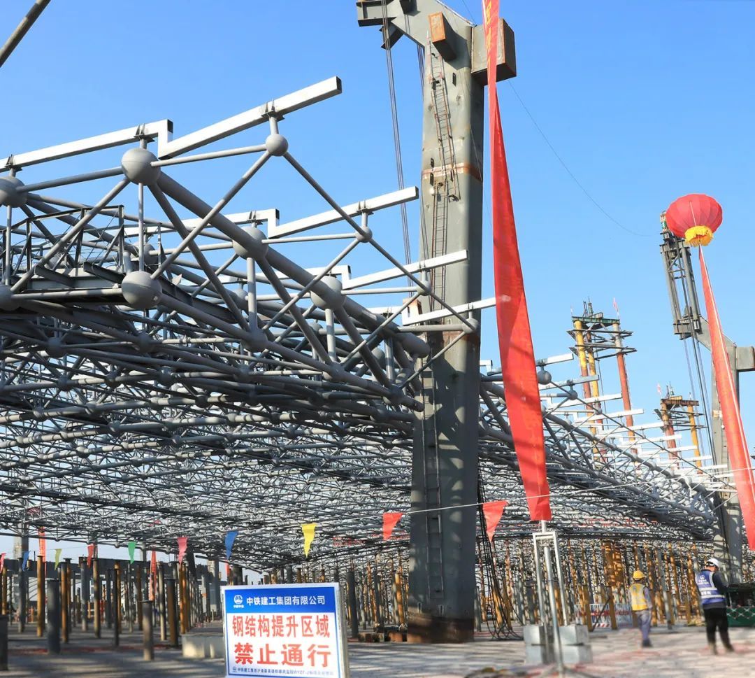 10月22日,由中铁建工集团承建的沪渝蓉高速铁路武宜段荆门西站项目钢网架首次提升成功,标志荆门西站站房工程进入外装和内装施工阶段,为下一步作业奠定坚实的基础,吹响四季度大干冲锋号角。