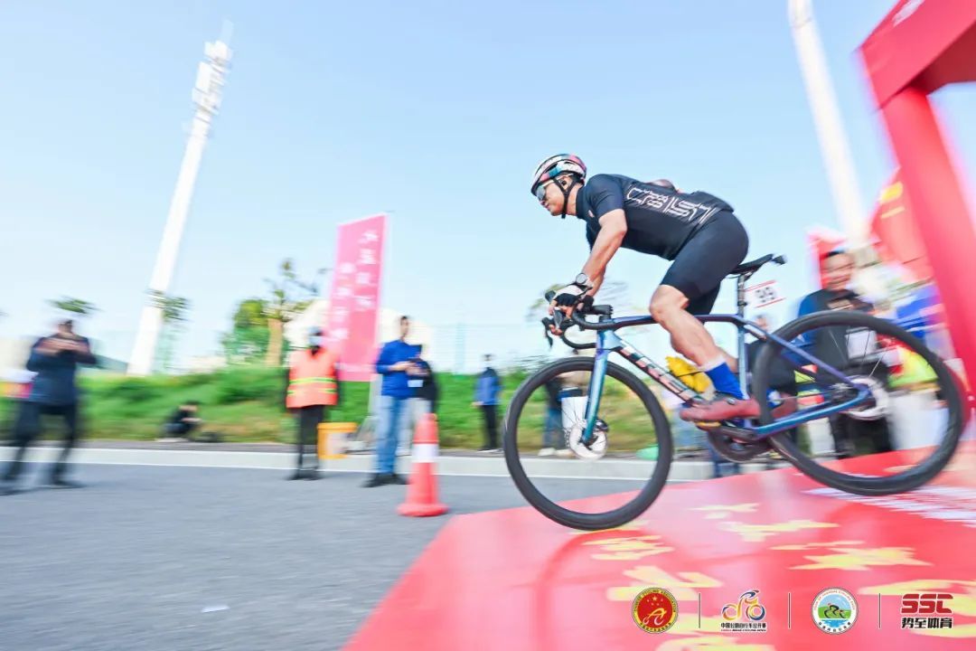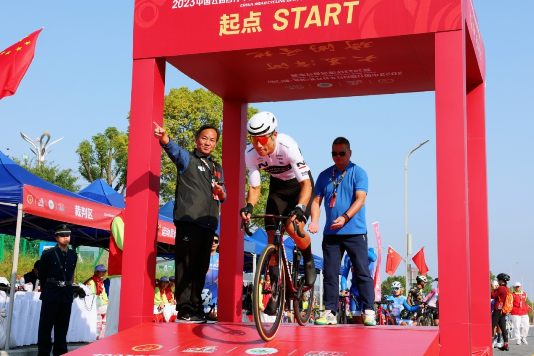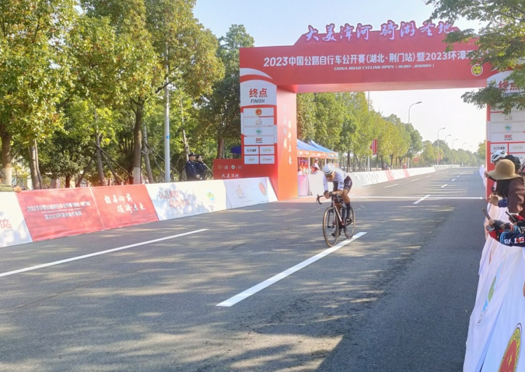 10月22日上午,2023中国公路自行车公开赛(湖北·荆门站)暨2023环漳河自行车赛男子公开组个人计时赛在漳河新区爱飞客小镇举行,来自美利达诺飞客中国车队的徐兆亮以9:48.595的成绩获得男子个人计时赛冠军。