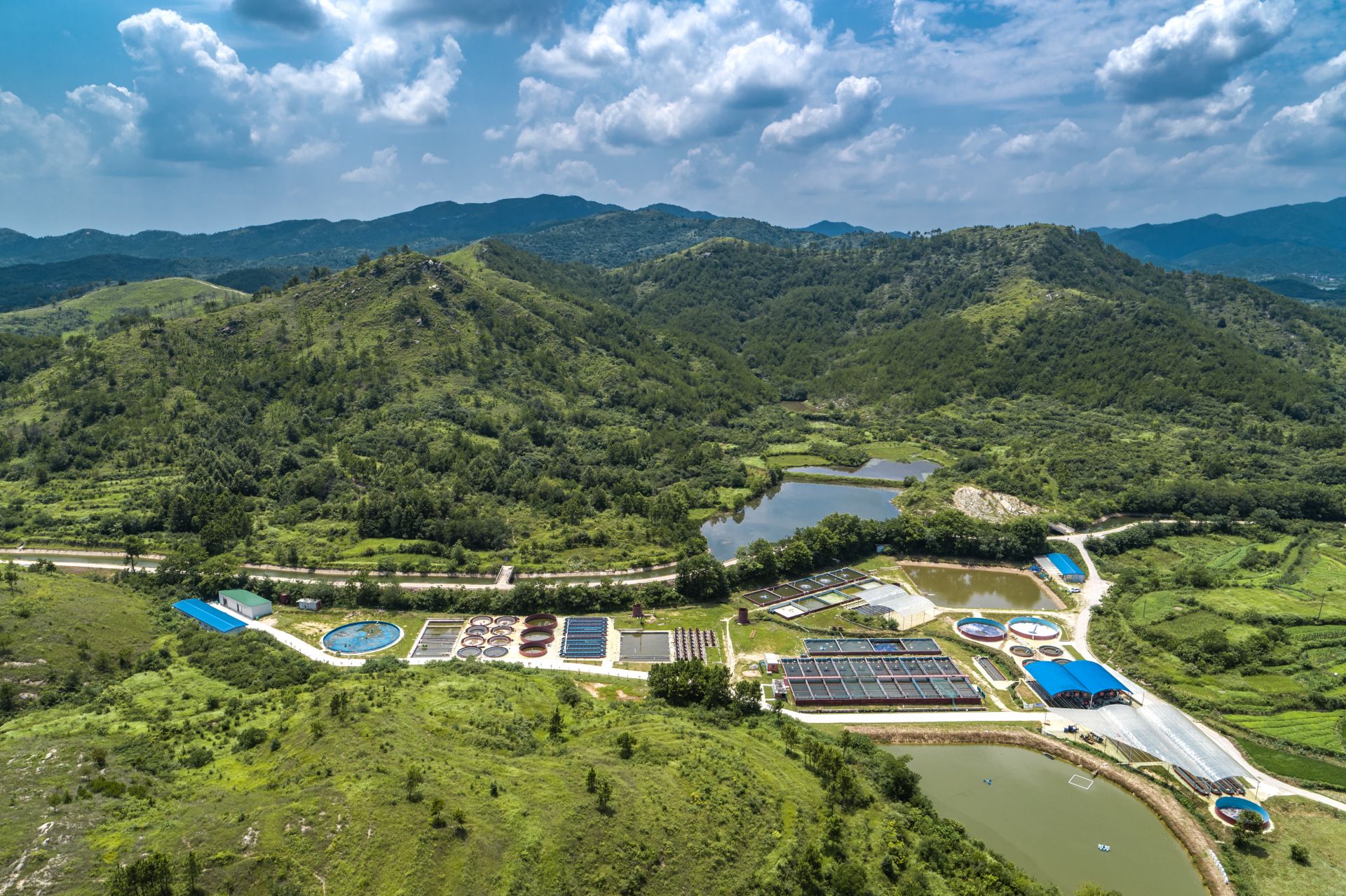 随着全国鳜鱼产业的发展变化,原基地规模制约了公司进一步发展。为此,夏小平一直在苦寻最佳投资地,他奔赴麻城、咸宁、嘉鱼、通城以及武汉郊区的很多地方考察……2019年,他终于在黄陂创造村发现了这片藏在库区少人识的“令人惊喜的宝地”——院基寺水库、泥河水库被一条弯曲的连接渠一肩挑起,水质优加上地形自然形成流水落差,特别适合建名贵鱼类繁育基地。于是,他选择在创造村投资建鳜鱼繁养殖基地,开启“智慧养鱼”“生态养鱼”新模式。