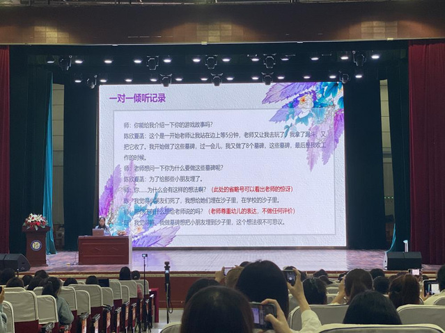 在专题分享中,武汉市江汉区教育局学前教育科特级教师骆萍、武汉市东湖高新区流芳幼儿园园长邹红霞、老河口市中心幼儿园园长寇艳芳分别以“从自主游戏走向场景化深度学习—基于问题解决的区域保教质量提升的策略研究”“自主·体验课程的探索与思考—以‘我的毕业照我做主’为例”“户外自主游戏体验课程实践经验介绍”为专题向与会人员分享优秀做法和先进经验,以期整合教育资源,形成合力与向心力,共同推进湖北省幼儿园课程建设。