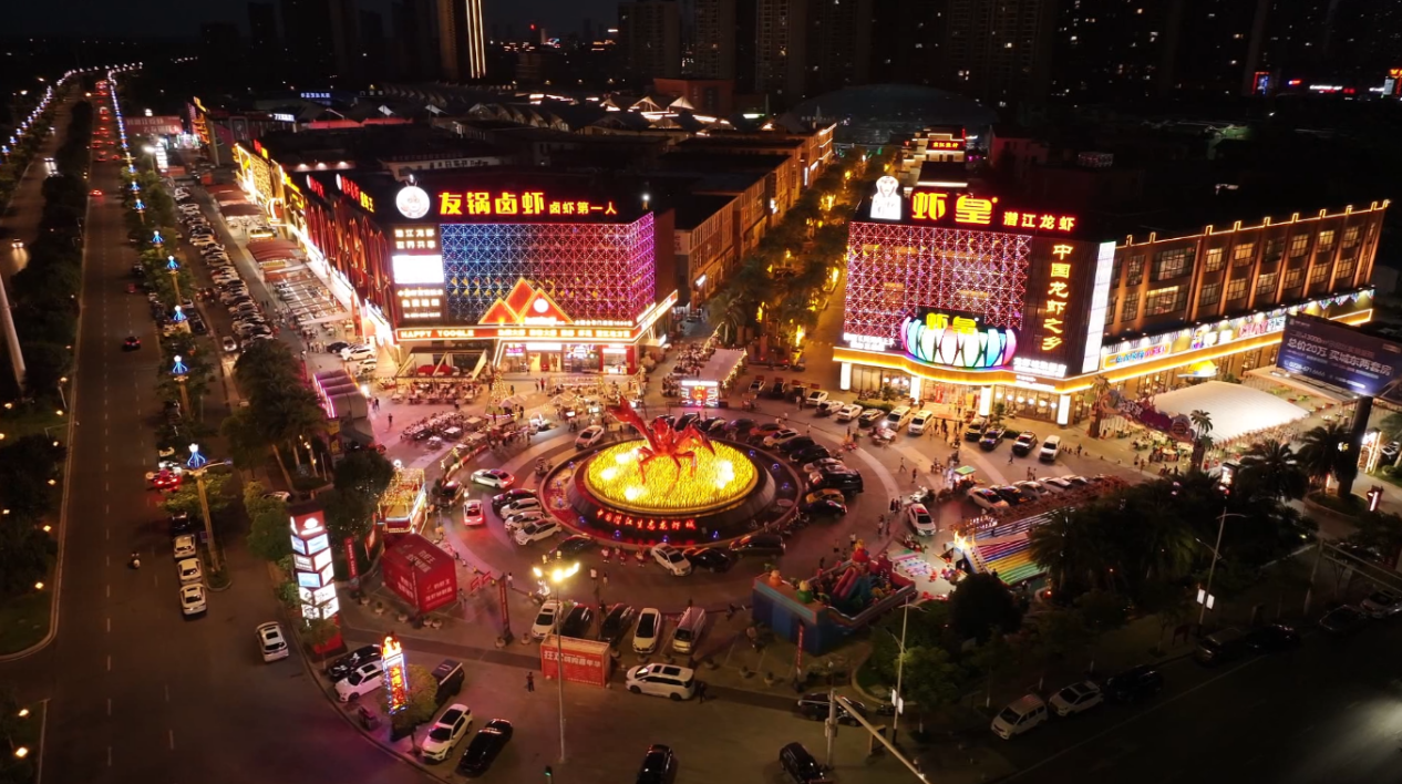 晚上八点的潜江,是红色的。10月23日是周末,拥有30多家小龙虾网红餐饮店的潜江生态龙虾城,又迎来一波打卡高峰。