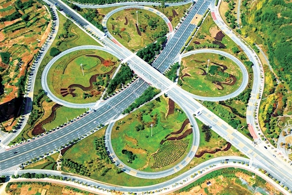 10月27日,记者在郧阳区天马大道与十堰大道互通看到,道路两旁园艺设计精巧美观,为沿线风景增色不少。近年来,我市不断完善高速公路、国省道、旅游公路、农村公路等道路体系,推动“交通+”融合发展,四通八达的道路成为群众的致富路、幸福路。特约记者杨显有摄