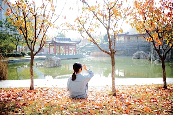 在汉江师范学院,路边的树叶从翠绿到黄棕,悄悄记录着时间的流逝。一片湖,万千思绪,湖水竟相知。通讯员罗优优摄