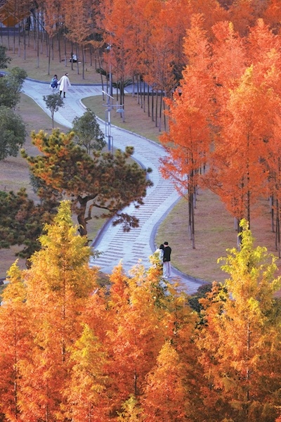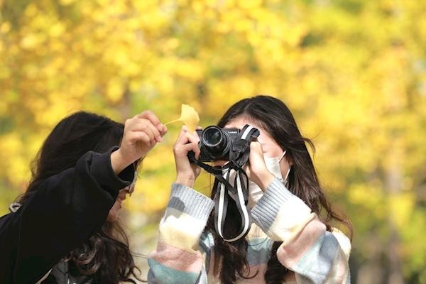 金黄的银杏,静谧的湖水,闲适的行人,汉江师范学院正在上演着秋天的童话。通讯员罗优优摄