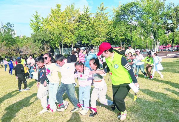 10月28日,荆门龙泉公园管理中心联合荆门环保小先锋,在龙泉公园东广场共享绿地,开展亲子运动活动。(记者 郑波 通讯员 李丽华 摄)