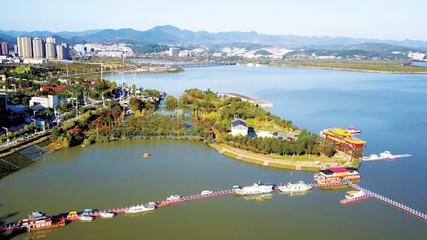 日前,记者在丹江口库区上游郧阳区段牛头岭码头看到,保持高水位的汉江江面辽阔、碧波荡漾,与沿岸生态公园构成了一幅秀美风景画。秋汛以来,水利部、长江委精细调度丹江口水库,丹江口水库大坝共拦洪13.1亿立方米,有效保障了汉江流域防洪安全。特约记者曹忠宏摄