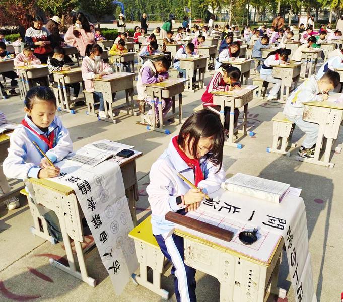 10月31日,广水市武胜关镇中心小学教联体开展了第八届书法比赛。图为学生现场书写“经典诗词”。(随州日报通讯员李茵、朱红权摄)