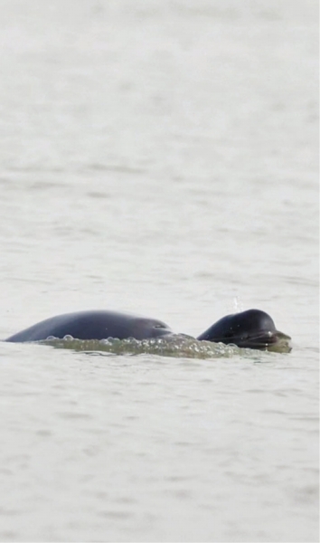 在长江新洲段活动的长江江豚。
