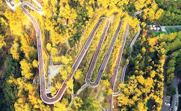 深秋时节,层林尽染,十堰健康步道周边山体在夕阳映照下显得格外迷人,市民徜徉其中,漫步休闲、欣赏美景,畅享近山、亲山、赏山、乐山的生态福利。健康步道开放之后持续火热,深受市民和游客喜爱,成为名副其实的民心之道、惠民之道。特约记者孔宪涛摄