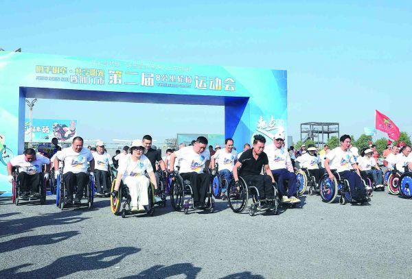 11月1日,湖北省“关爱我的残疾人兄弟姐妹”——心手相牵 共享阳光暨荆门市第二届轮椅马拉松比赛在漳河新区爱飞客小镇举行。