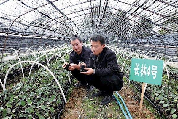 11月5日,竹山县林业科技特派员到该县宝丰镇九里岗大棚油茶苗圃基地查看苗木长势情况。该县组织林业技术服务团队深入各乡镇林果苗木基地,现场培训、示范指导,普及先进管理技术,帮助种植户解决实际问题,助推乡村产业振兴。特约记者程平通讯员左翰谌朋摄