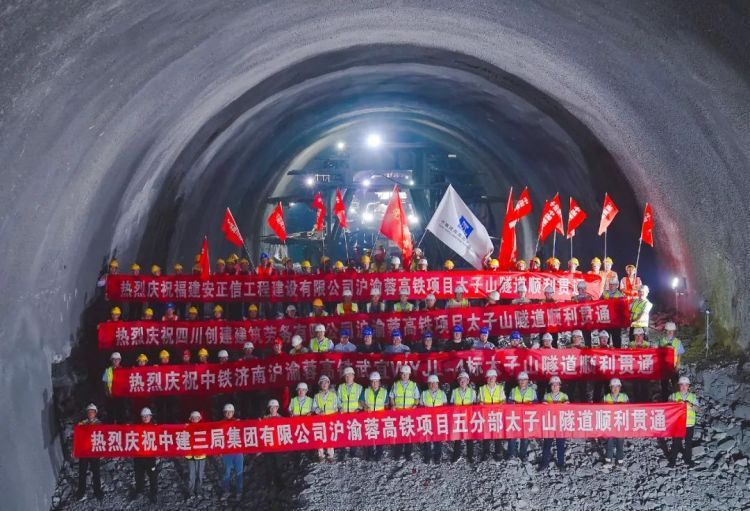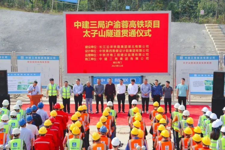经过500多天攻坚,近日,沪渝蓉高铁武荆段最长隧道——屈家岭太子山隧道顺利贯通,为2025年9月沪渝蓉高铁武荆段全线建成通车奠定了坚实基础。