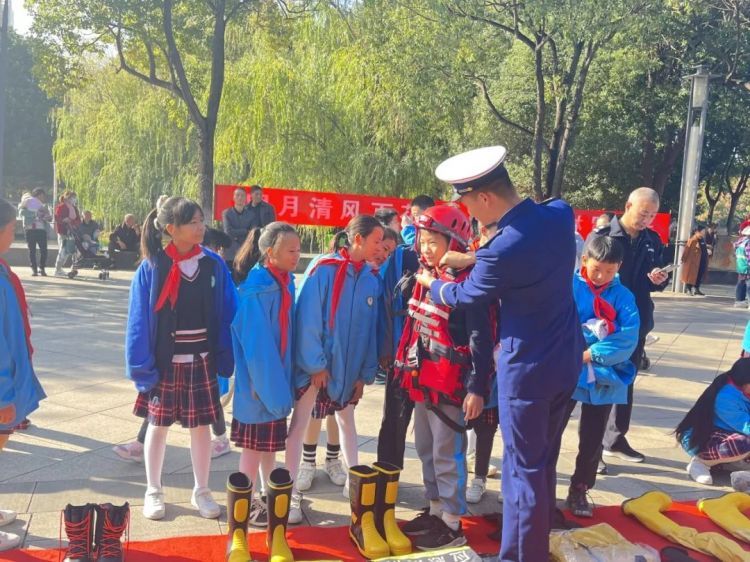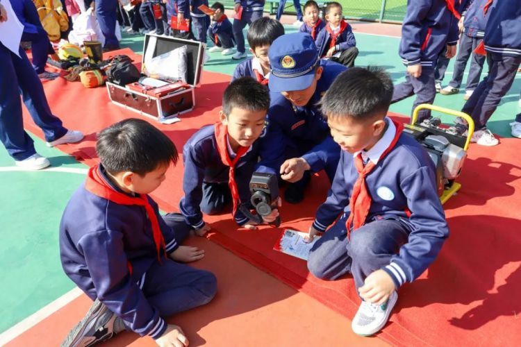荆门市沙洋县消防救援大队消防员走进沙洋县汉上实验学校开展“消防伴我童行”119消防宣传月主题活动。活动现场,消防员结合日常生活场景,详细讲解了电动车违规充电等消防安全知识,同时讲解了灭火器、消防栓等常见消防器材的使用方法。