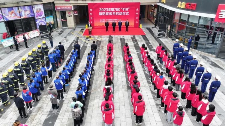 11月9日,2023年掇刀区“119”消防宣传月活动启动仪式在掇刀万达广场隆重举行,荆门高新区党工委委员、掇刀区委常委、 区人民政府副区长郭剑林、掇刀区政府办副主任李冰、掇刀区应急管理局局长杨冬等相关领导出席活动。各镇(街道、社区)、市消安委相关成员单位、重点单位、志愿服务队及社区学校等单位300余人积极参与。活动现场设置了启动仪式、消防器材展示体验、消防宣传车展示、逃生帐篷体验、消防实战演练等环节,全力助推“119”消防宣传月活动。