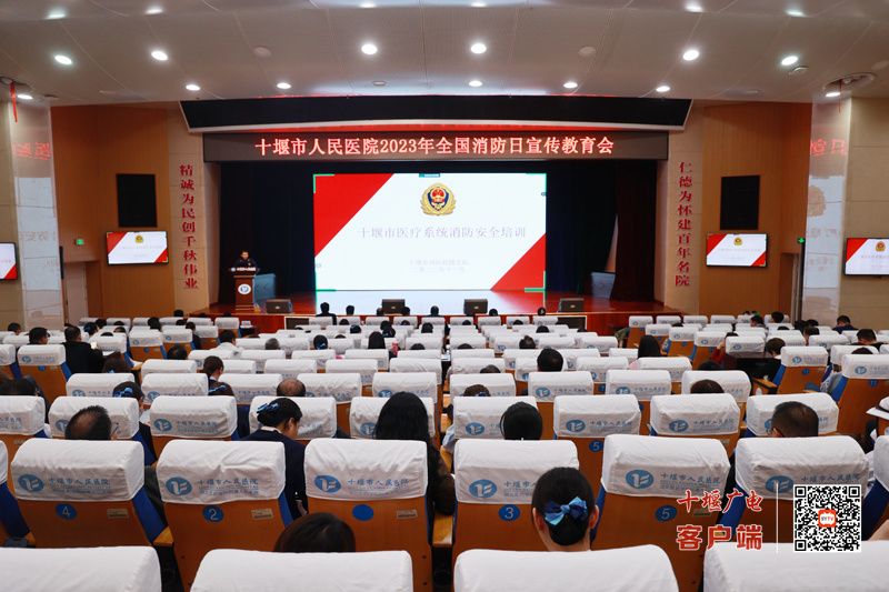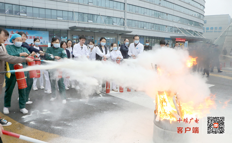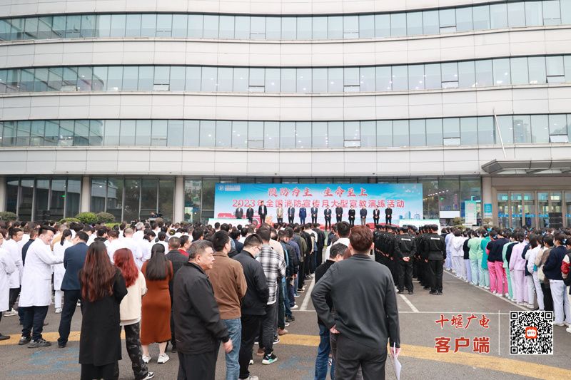 十堰广电讯(全媒体记者 李姿瑾 通讯员 马婷婷)11月9日下午,在全国“消防日”当天,十堰市人民医院联合市消防救援支队开展了消防安全知识培训及“沉浸式”消防应急演练,进一步强化职工消防安全意识,提高应急处理能力,筑牢医院安全“防火墙”。全体在家院领导、全院非值班人员,以及现场观众共计2000余人参加活动。活动由副院长唐振刚主持。