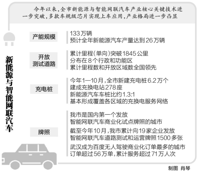 武汉市是国内第一个发放智能网联汽车商业化试点牌照的城市。数据显示,截至今年10月,武汉市累计向19家企业发放智能网联汽车道路测试和运营牌照1500多张。武汉成为百度无人驾驶商业化订单最多的城市,订单超过56万单,累计服务超过71万人次。
