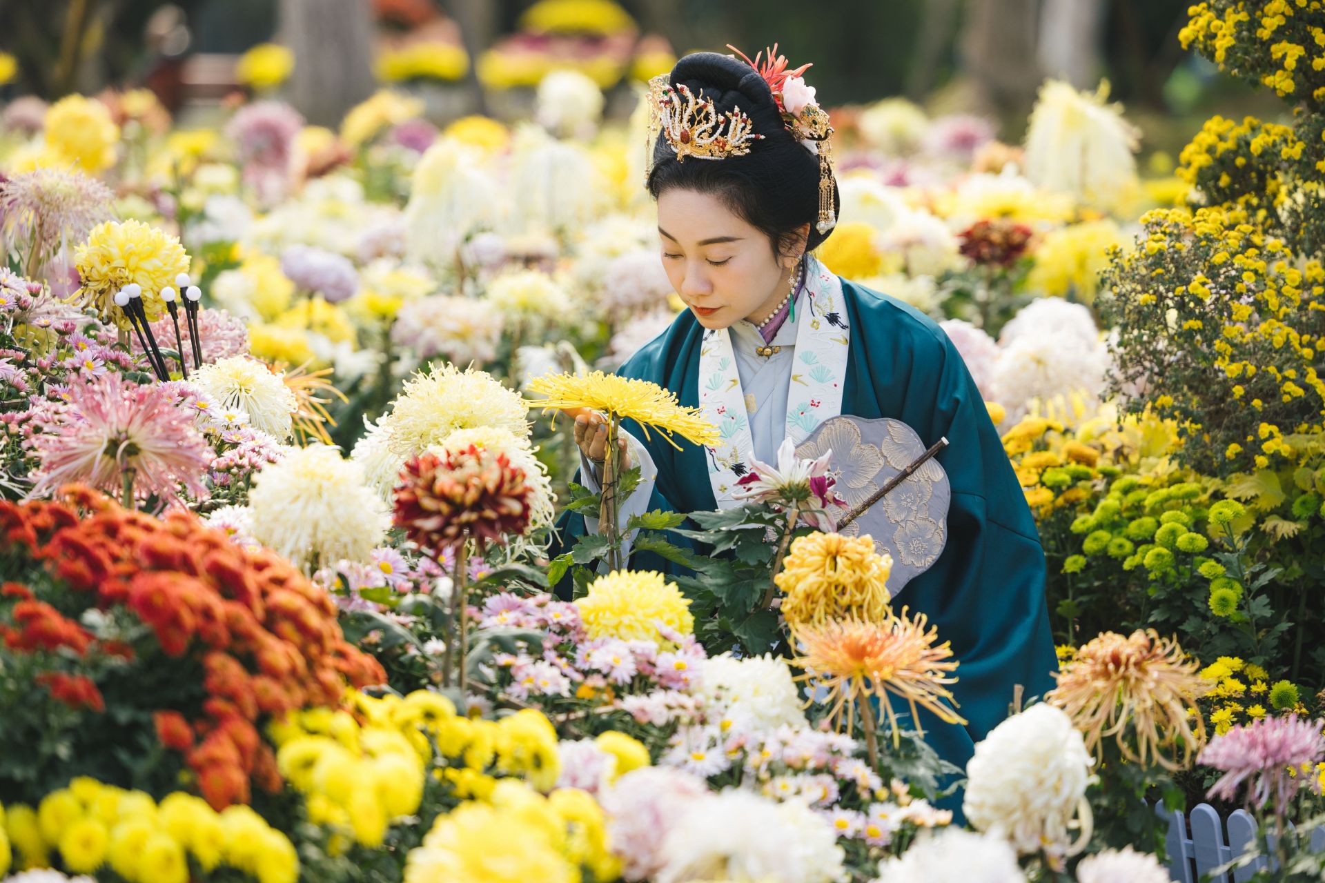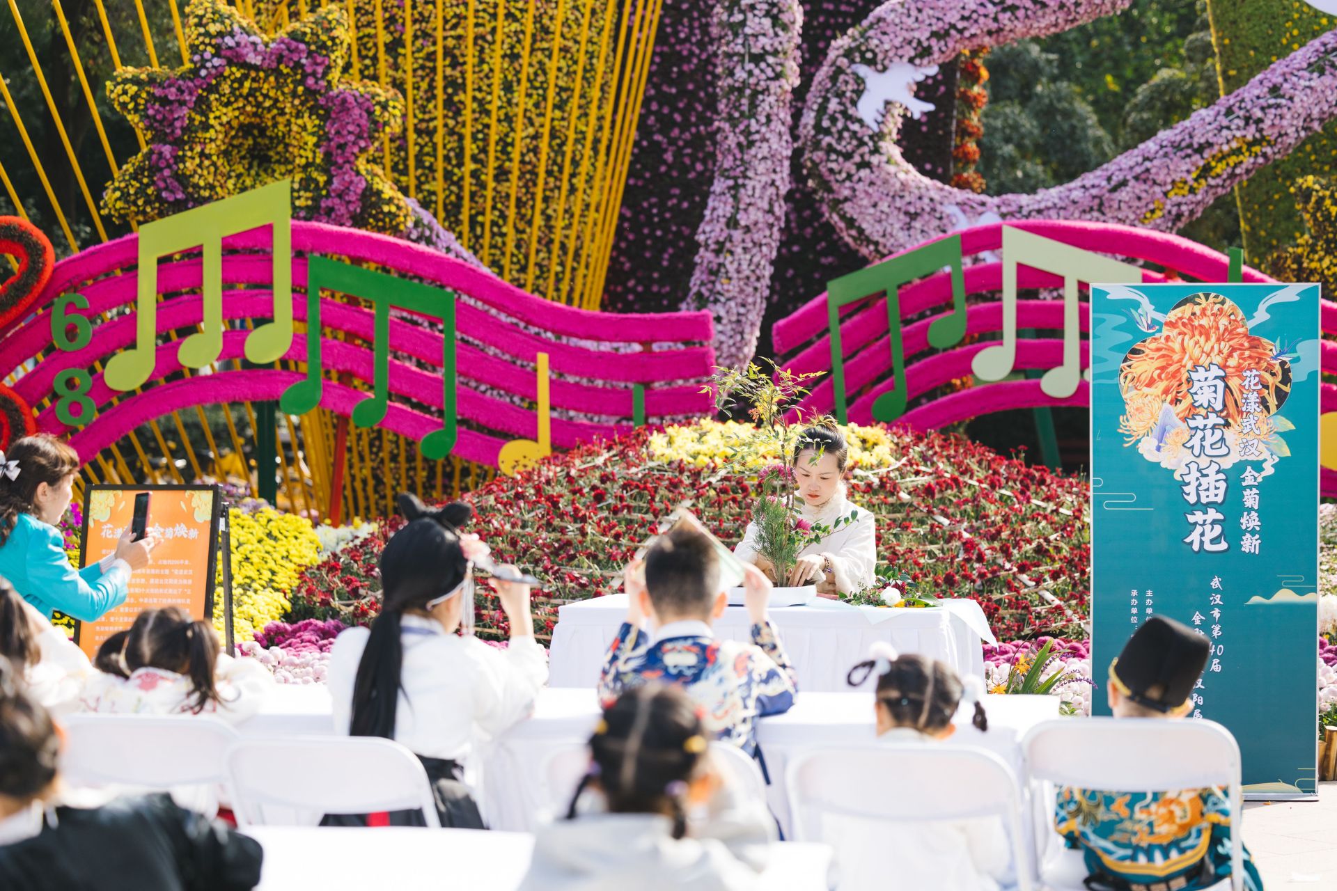 汉阳区琴台绿化广场展区举办菊花插花及汉服体验活动。 汉阳区绿委办 供图