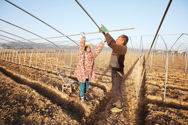 11月16日,房县军店镇刘家畈村农民在冬闲田搭建保温保湿大棚架,准备种植高质高效的羊肚菌。时下,房县冬季农业生产一派繁忙,当地农民在田间平整土地、搭架,种植羊肚菌,将“冬闲田”变成“增收田”。近年来,该县推广“水稻+羊肚菌”循环种植,夏种水稻冬种菌,实现水稻、羊肚菌双丰收,有效提升土地利用效率,促进乡村振兴。
