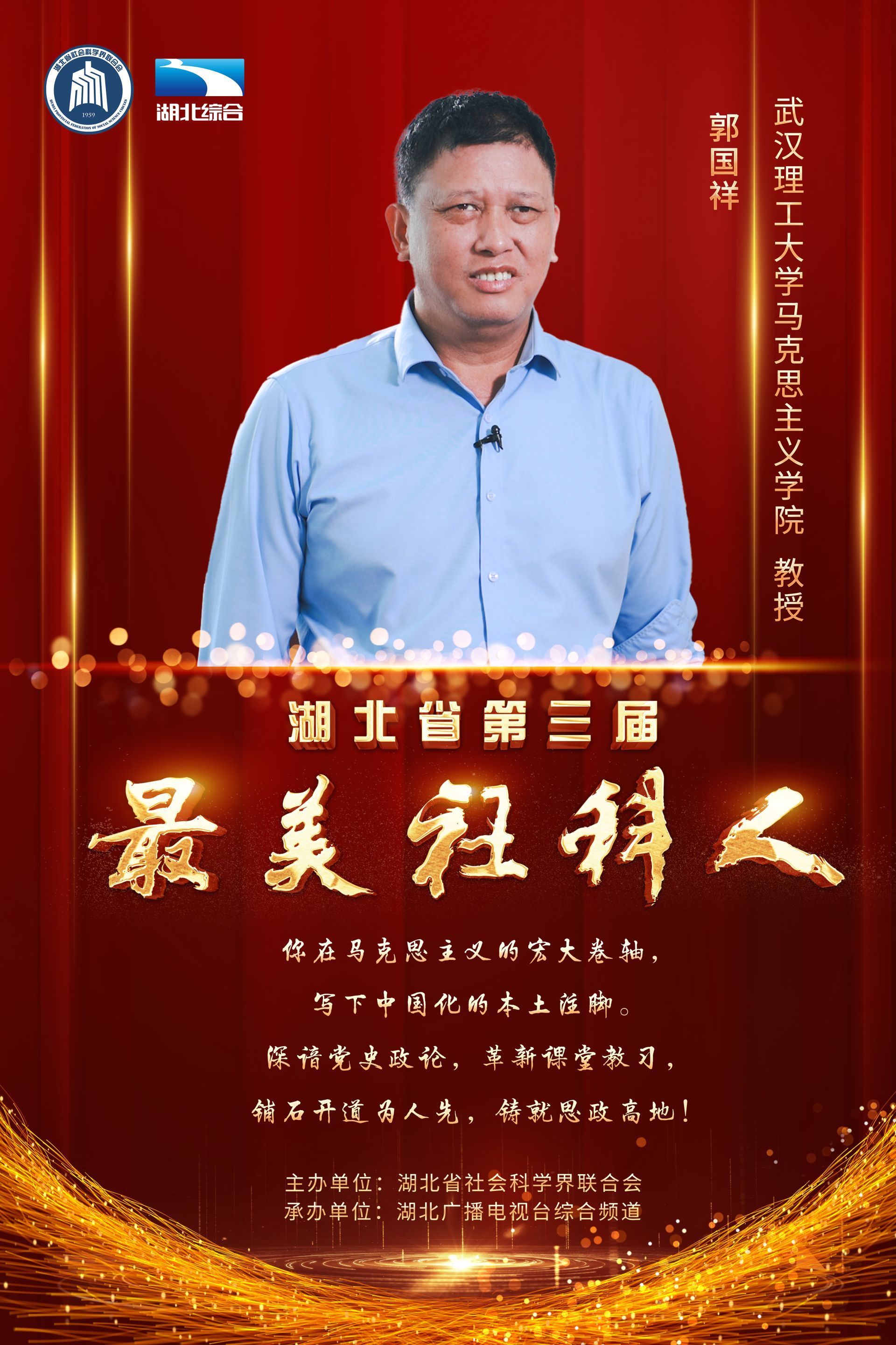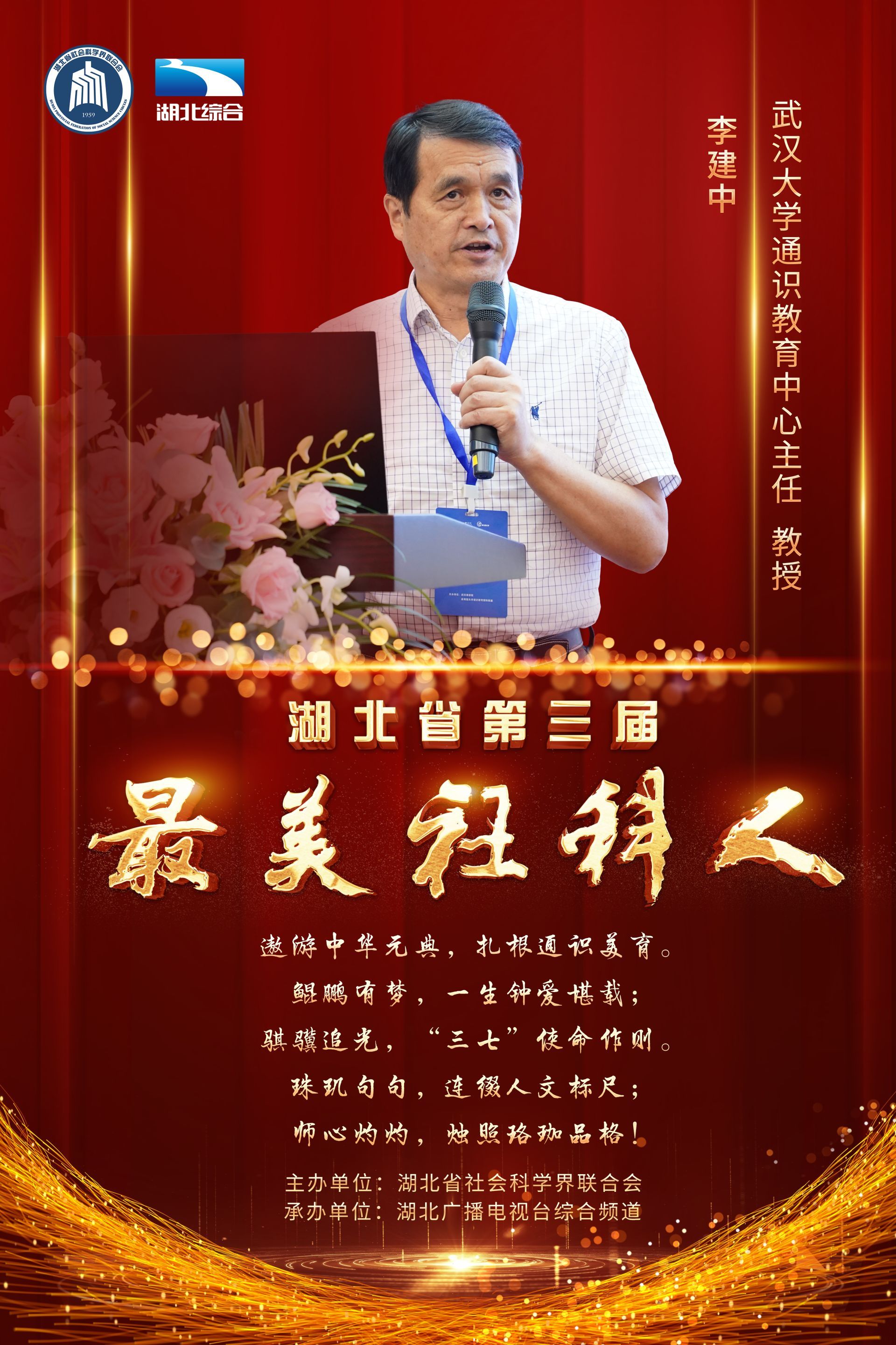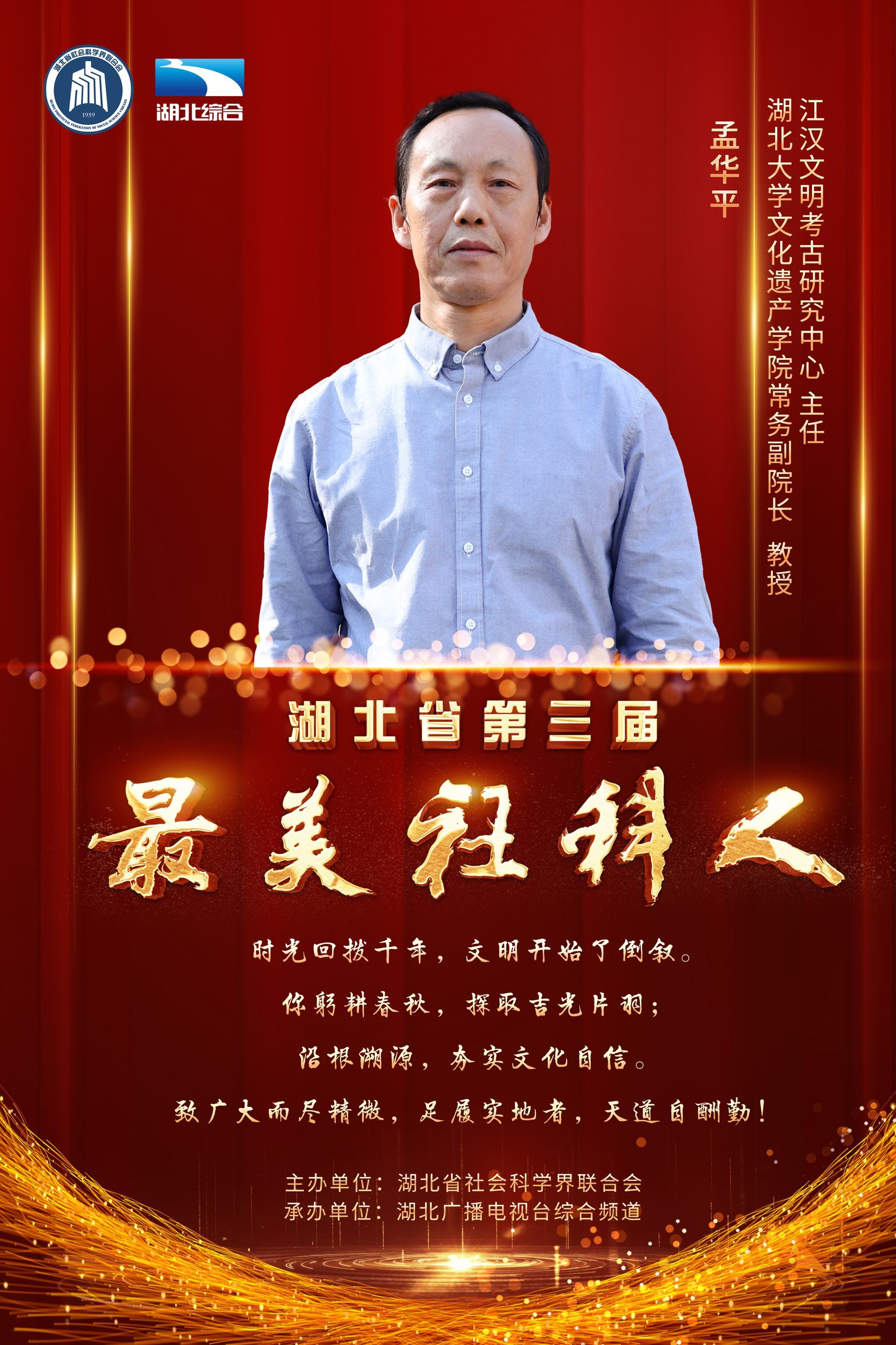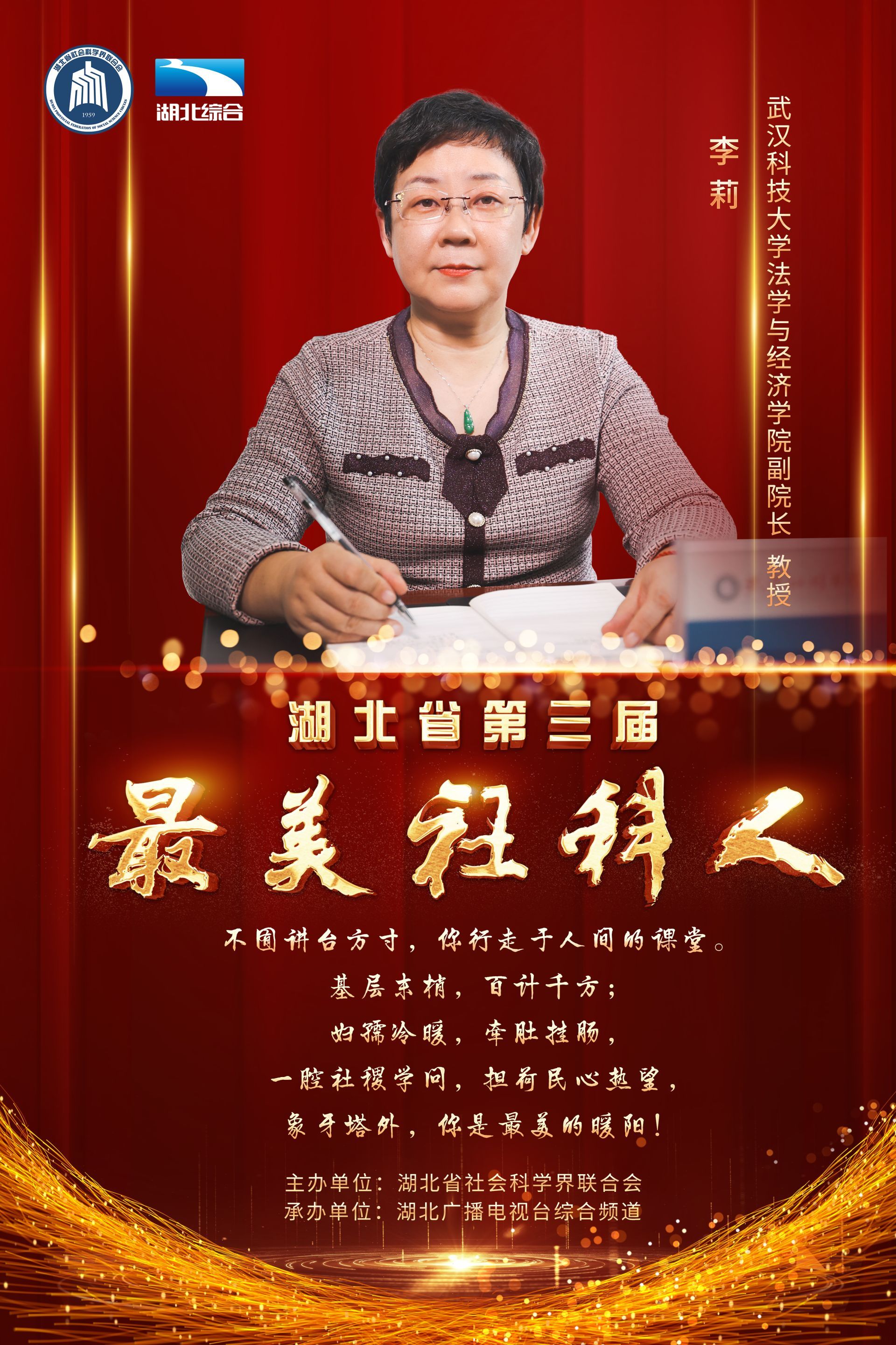 肩负使命,培根铸魂育人;潜心笃志,学思润泽荆楚。11月20日下午,由湖北省社会科学界联合会主办的“第三届最美社科人发布仪式”在湖北广播电视台演播厅成功举办,王雨辰、田传茂、杜时忠、李建中、李莉、汪习根、张安录、孟华平、荣开明、郭国祥等10位社科工作者荣获“最美社科人”称号。湖北省委常委、宣传部部长琚朝晖出席发布仪式,并为获奖者颁奖。