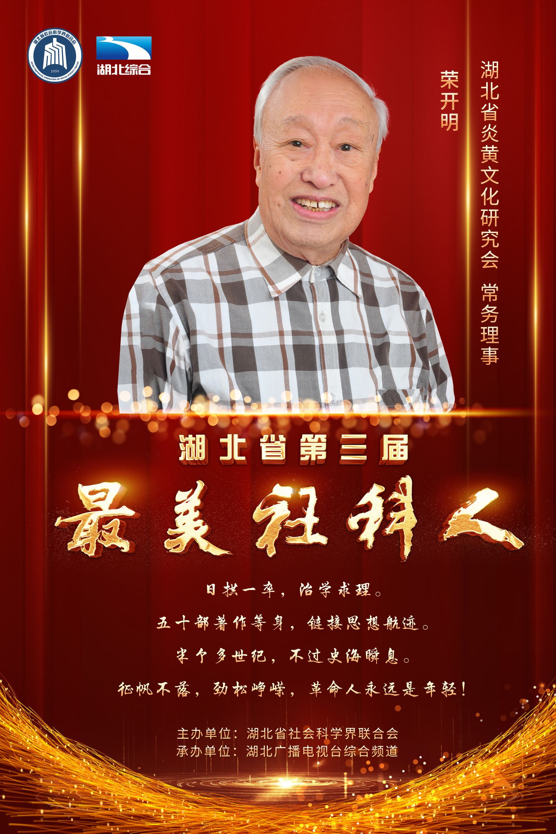 “快乐考古人”孟华平40余年探未知、求本源,长期坚持在考古一线,发掘出了现存湖北省博物馆的太阳人石刻、天门市石家河遗址,为中国未来文化发展提供方向。92岁荣开明自称“90后”,他扎根社科半个多世纪,身患癌症仍坚持每日学习,远赴台湾、港澳等地展开“一国两制”国际理论研究调研,身体力行诠释“社科人永远是年轻”。王雨辰潜心传播马哲,所撰写书籍入选高中教材,立志通过哲学助人辨明人生方向,打破哲学无用论。