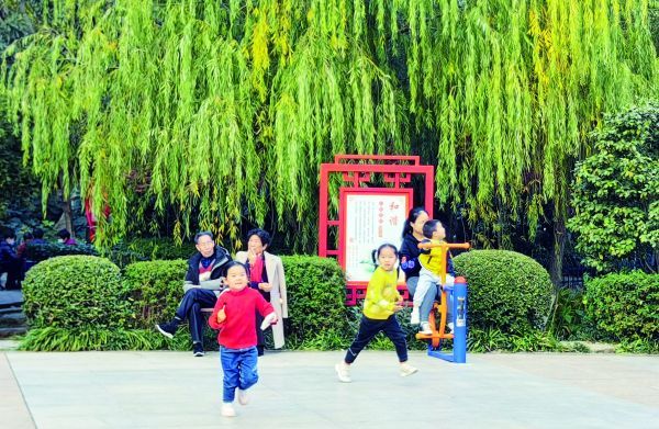 近日,在象山三路小游园,市民三五成群健身、唱歌、聊天,孩子们欢声笑语,好一幅幸福和谐的画卷。近年来,我市聚焦民生需求,推进“口袋公园”建设,为居民营造家门口的活动空间,让居民邂逅转角处的精致生活,提升了居民群众的幸福感、获得感。(记者 朱舜 摄)