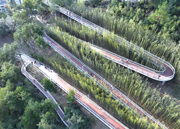 沿着步道行进,处处可见城市的教养。经过洁净空气的过滤,城市镶嵌在绿与绿之间。山城相依,万木荟萃,城市充满生机与活力。站在健康步道的最高节点,十堰正以崭新的姿态,书写着绿色低碳发展的壮丽篇章。