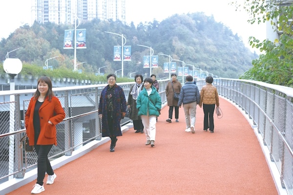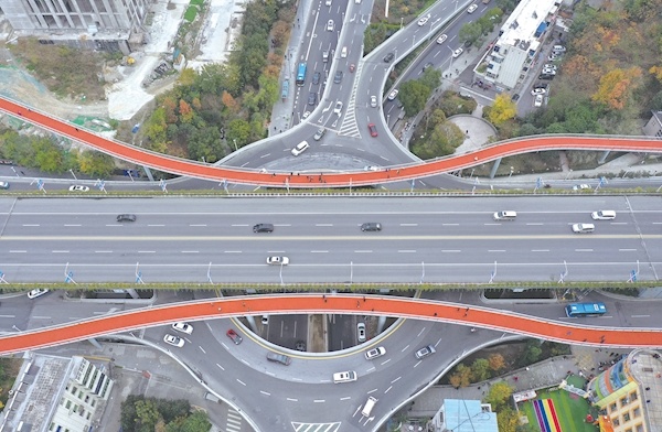 北京路环球港人行天桥为城区增添一道靓丽风景。
