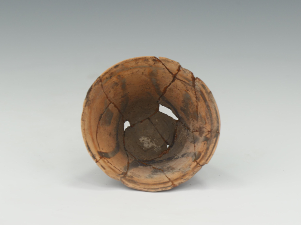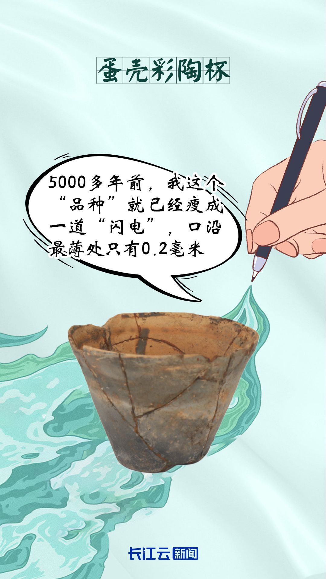 屈家岭遗址出土的蛋壳彩陶杯,在屈家岭文化之前没有在形态上与之接近的器具。它形似我们当今的一次性纸杯,杯壁厚度一般在0.5毫米左右;底部略厚,约0.5-1毫米;口沿最薄处只有0.2-0.3毫米厚。因胎壁薄如蛋壳而得名“蛋壳彩陶杯”。