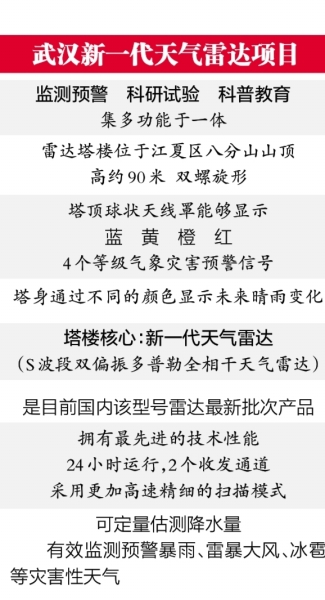 据了解,武汉新一代天气雷达项目是中国气象局与湖北省人民政府合作共建的重点工程,集监测预警、科研试验、科普教育等功能于一体,日前刚完成竣工验收。
