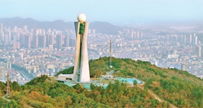6日,长江日报记者在八分山山顶看到,约90米高的塔楼造型现代,塔身为独特的双螺旋形曲面结构,头顶一颗“明珠”,如舞者扭着“小蛮腰”。记者进入塔楼乘电梯上到瞭望层,视野之内一览无余。