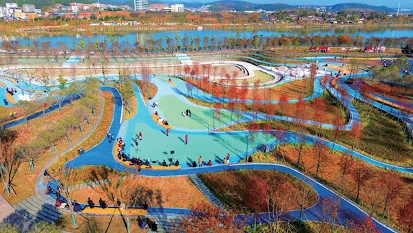 12月2日,阳光和煦,市民在郧阳区外滩生态运动公园休闲游玩。据了解,面积达8.96万平方米的外滩生态运动公园是郧阳湖北岸生态护岸景观工程的一部分,已栽植景观树木1.88万株,建有生态休闲广场、彩色环湖慢跑道、轴线景观廊、综合运动场等。