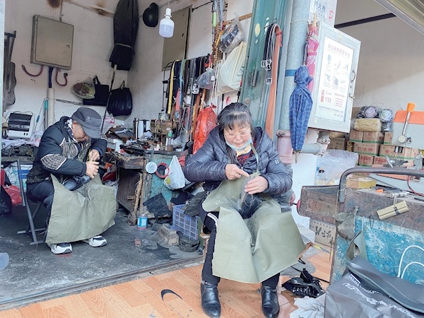 “虽然干这个活又脏又累,也不体面,但我们靠它拉扯大了两个孩子,我很知足。”熊洪碧笑着说,他们目前没有回家养老的打算,准备继续干下去,为孩子们减轻负担。“10多年前,我们修补一双鞋收5元—10元,现在物价上涨了,也差不多这么收费,都是小本生意,图的就是给大家提供方便。”王道华笑着说。
