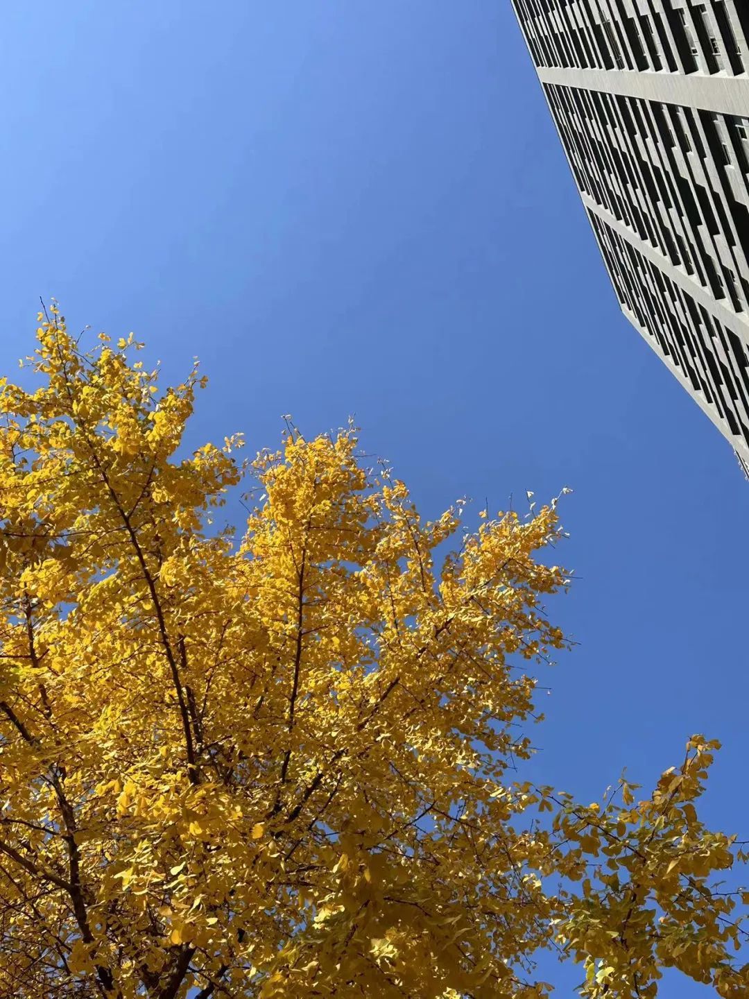 7日,湛蓝天空下武汉街头美丽的银杏树
