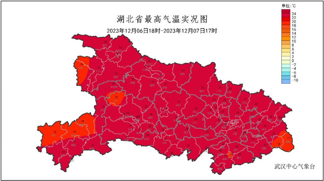 十堰、宜昌、随州、荆门、孝感、潜江等地纷纷突破了当地12月历史最高气温纪录。