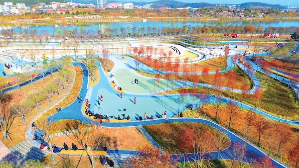 最近几天,阳光和煦,许多市民在郧阳区外滩生态运动公园休闲游玩。据了解,面积达8.96万平方米的外滩生态运动公园是郧阳湖北岸生态护岸景观工程规划建设的一部分,栽植景观树木1.88万株,建有生态休闲广场、彩色环湖慢跑道、轴线景观廊、综合运动场等。图/特约记者杨显有