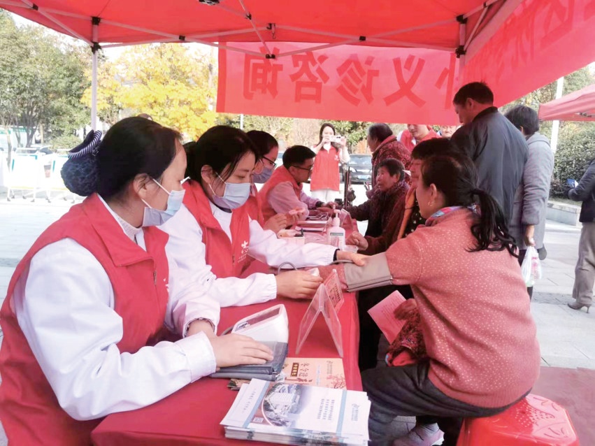 志愿者“摆摊”为社区群众提供免费医疗服务。