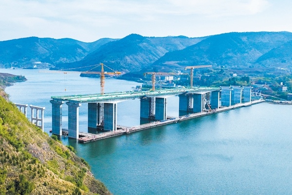 12月4日,记者在位于郧阳区的神定河大桥施工现场看到,大桥正在进行主跨桥箱横梁浇筑施工。该大桥是十堰生态滨江新区至武当山玄岳门一级公路(玄岳大道)郧阳区段关键性控制工程,全长610米,共设12个桥墩,双向六车道。目前,施工单位正在加紧施工,确保大桥如期建成。特约记者周家山摄