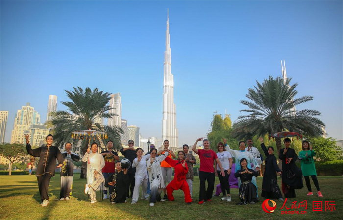 人民网迪拜12月13日电 (记者管克江)周日清晨,世界最高塔——迪拜哈利法塔下的草坪上,一群身穿中式练功服的人们排成队列,伴着舒缓的古典民乐,起势、野马分鬃、白鹤亮翅……近年来,每周练习太极拳已经成为许多迪拜民众的爱好。