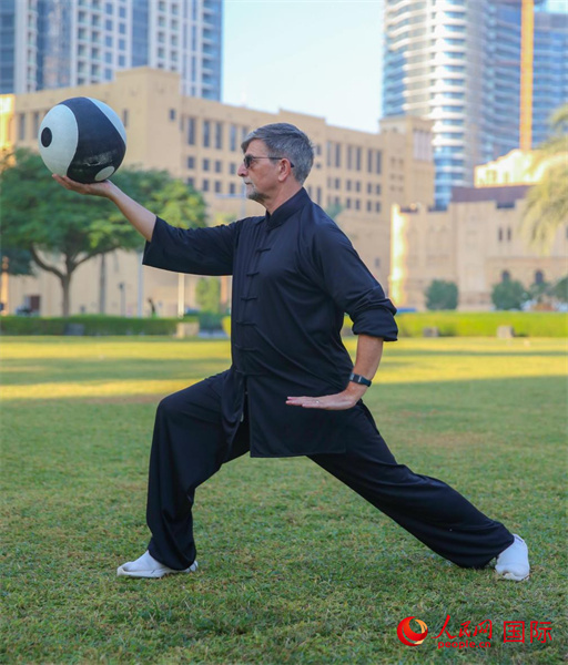 罗伯特在练习太极球。人民网 塔里克·易卜拉欣摄