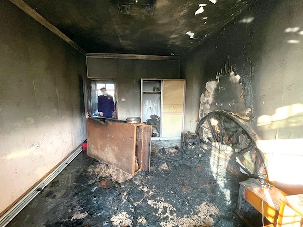 去年,张湾区一家属楼房屋内突然冒出浓烟,路人发现后报警。消防人员到达现场后迅速将明火扑灭。此次火灾导致卧室床铺被烧毁,屋内一片狼藉,未出现人员伤亡。
