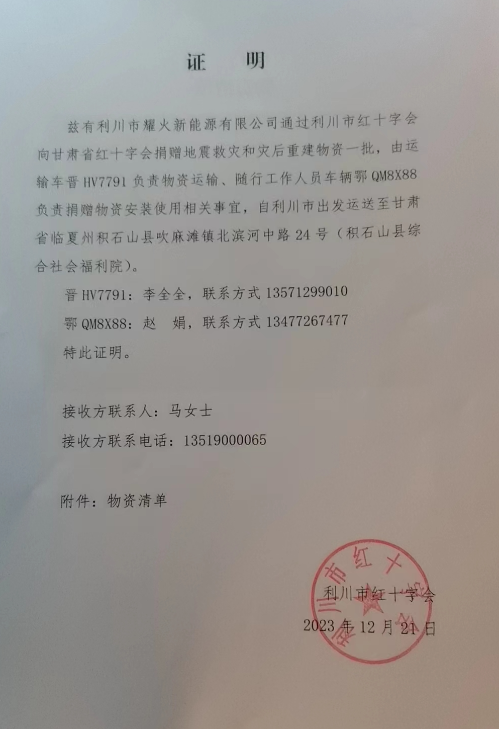 “因为我们仓库库存不足,20号开始我们请工人连夜赶工组装,并从柏杨坝镇订购20吨燃料,赶在运输车到达之前,准备好所有捐赠物资。”杜春文赵娟夫妇说道。