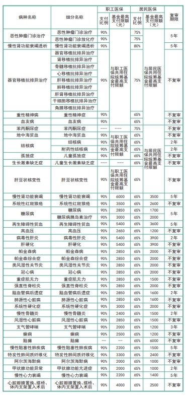 荆门医保门诊慢特病支付比例、基金最高支付限额、复审期限明细表